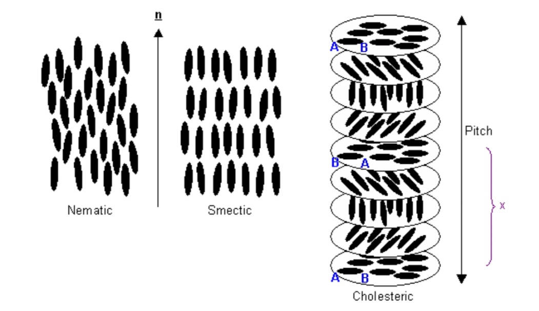 Smectic보다 Nematic이 좀 더 배열의 힘이 없는 것 같은 모습 보이시나요? 그처럼 Nematic LC가 전기장에 보다 잘 반응합니다. 그렇기 때문에 많은 LCD는 Nematic LC를 사용합니다.