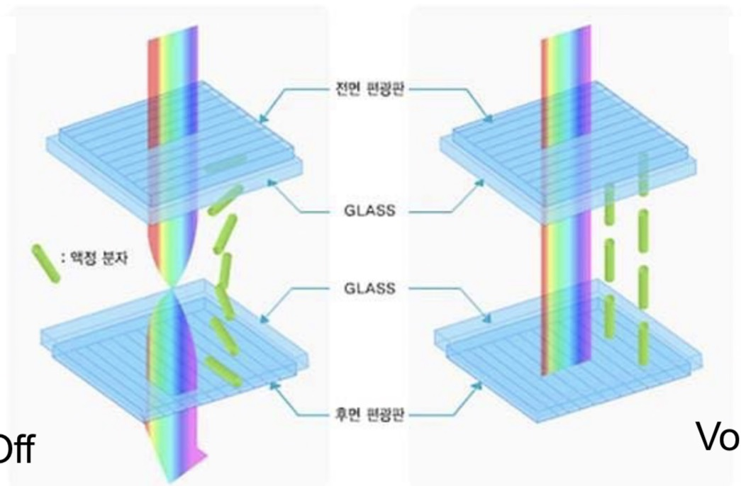 LC는 빛을 전달하는 수단입니다. 광원에서 빛이 나올때는 빛이 모든 방향으로 나아갑니다. 그렇기 때문에 우리는 다른 방향의 빛으로부터 간섭을 줄이고 필요한 빛만 우리 눈에 들어오도록 빛을 편광시켜주는 작업을 진행합니다.