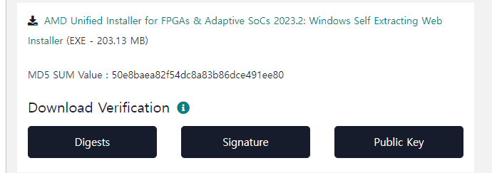 AMD 홈페이지에서 회원가입 후 위의 파일을 설치해 vivado를 다운로드합니다.
