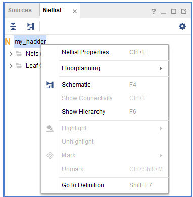 Run Implementation 완료 후 Netlist에서 파일을 우클릭 후, Schematic을 클릭합니다
