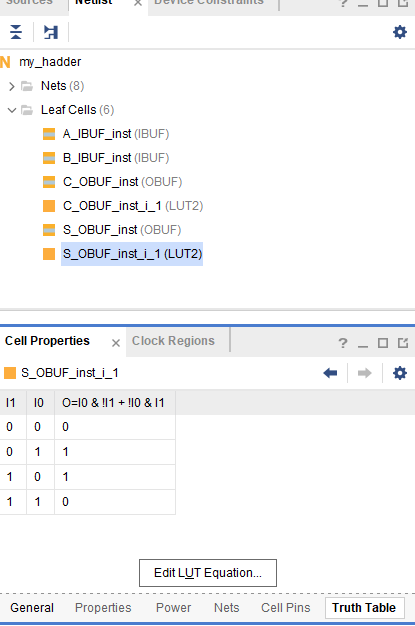 원하는 cell을 선택 후 아래 Truth Table에서 진리표를 확인할 수 있습니다. 정상적으로 설정돼있는 것을 확인할 수 있습니다.