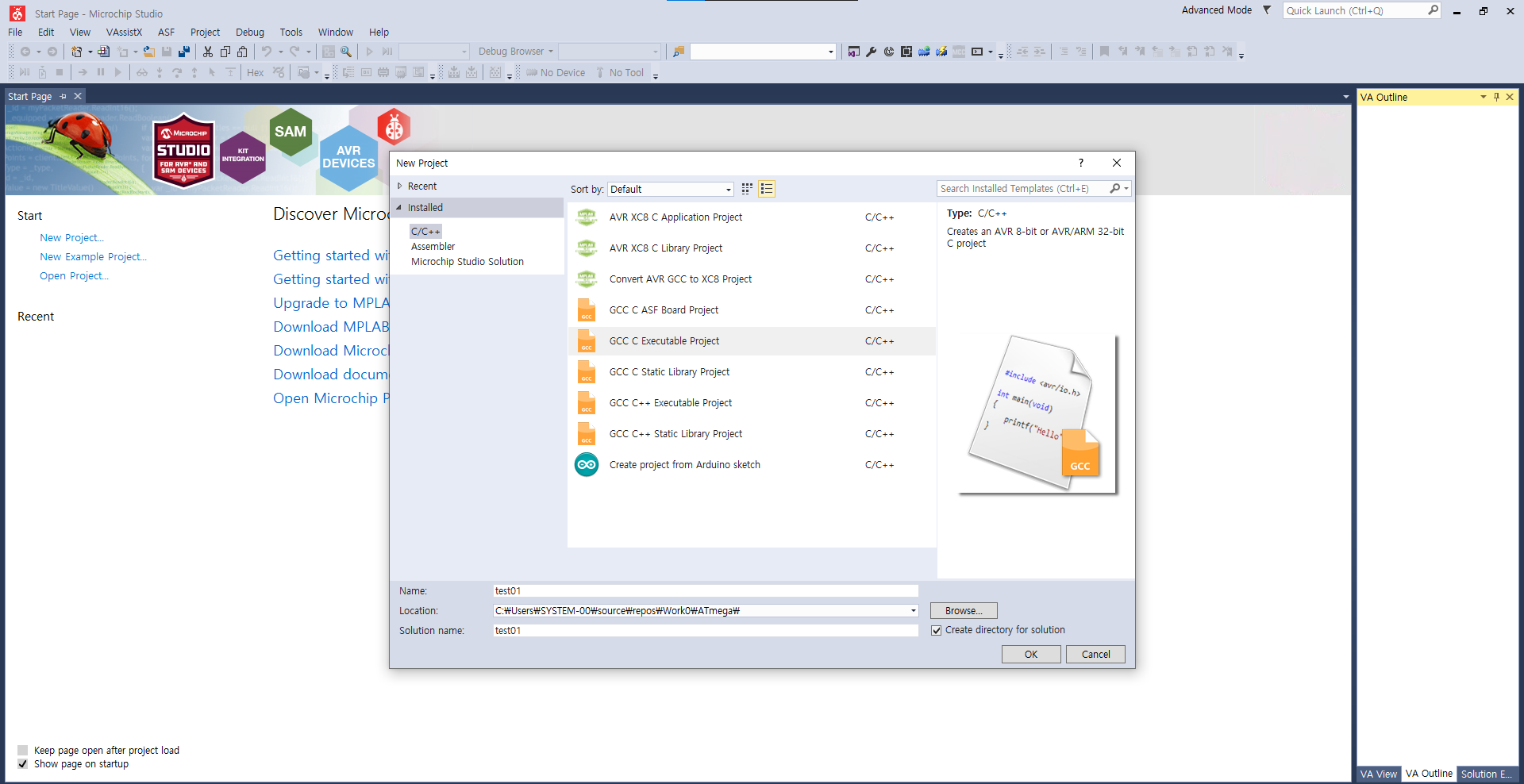 C언어로 진행하기 위해 C Excutable Project로 생성해 줍니다.