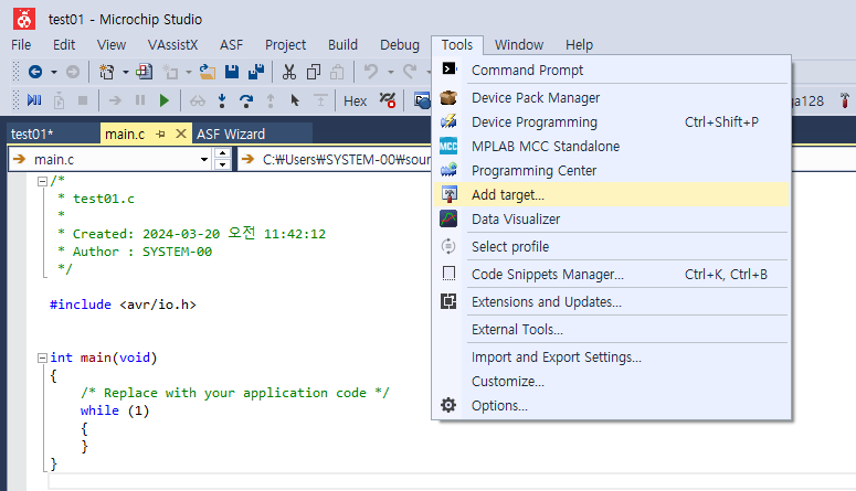 이번엔 Tool - Device Programming(Ctrl + Shift + P) - Tool 선택 - Apply