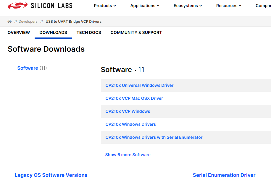 Silion Labs에서 OS에 맞는 Drivers를 다운로드합니다.