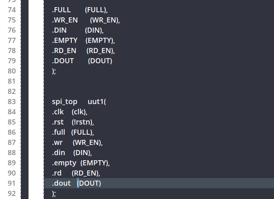 Testbench 내에서 DIN, DOUT Port가 선언되지 않아 Default로 1bit로 연결되어 생긴 문제.