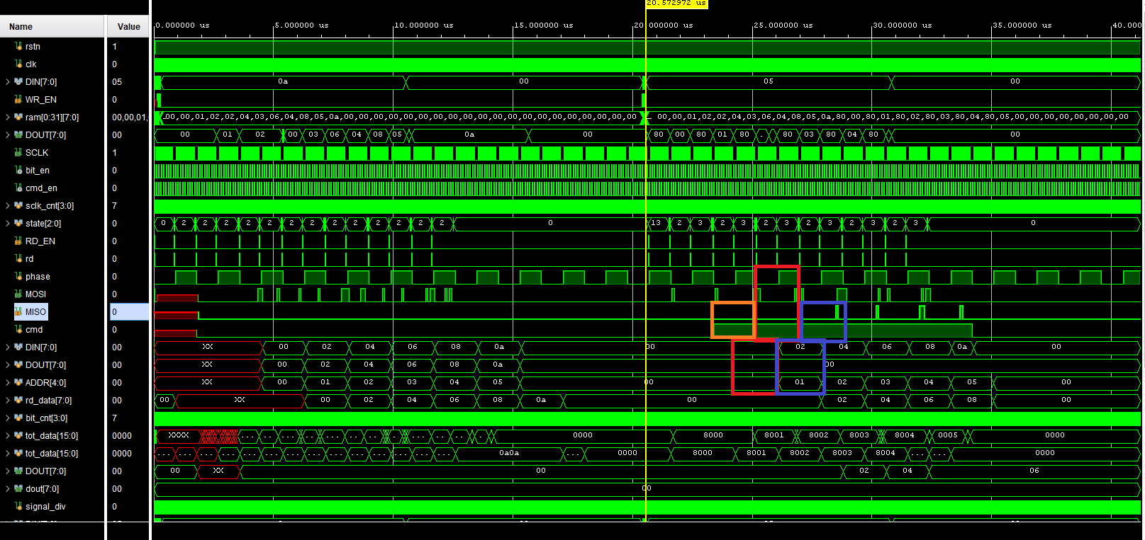 https://chanfifo77.tistory.com/86 [Verilog] 20. SPI Debugging(1)발견된 문제점1. 전제 모듈 연결 후, Read 할 때, MISO 값이 간헐적으로 이상하게 나오는 것을 확인.2. Master에서 RX FIFO로 가는 DOUT의 출력 값 이상 확