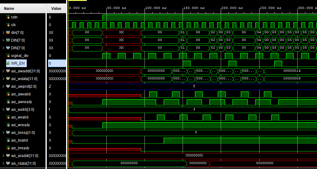 WR_EN 신호가 WDATA에 맞춰 동작하지 않음.