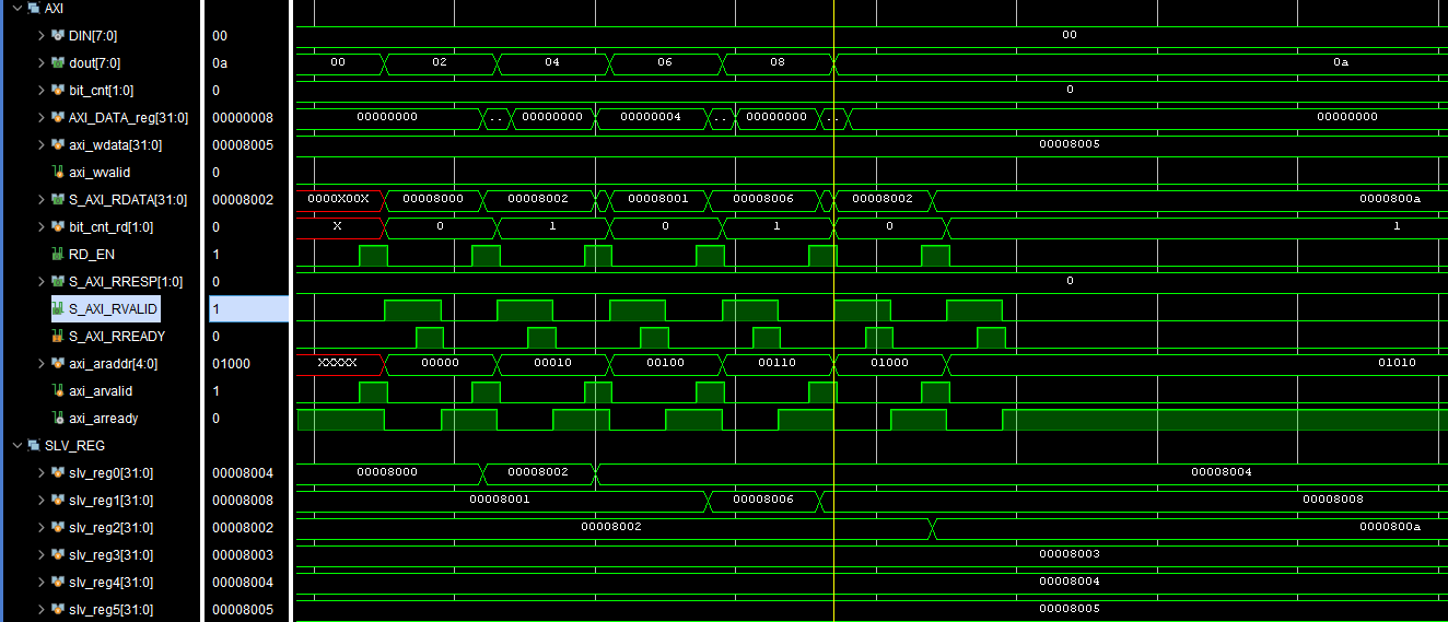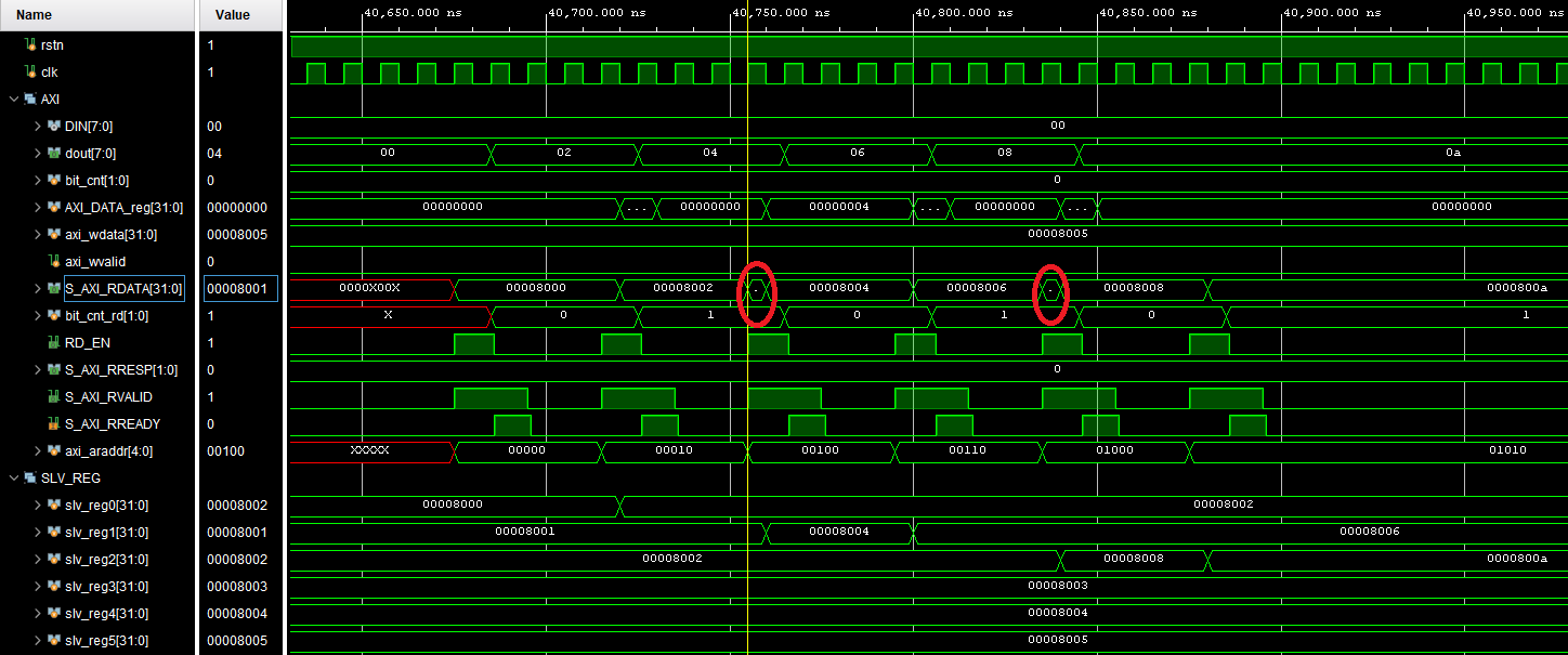 하지만 값이 간헐적으로 다음 slv_reg와 충돌하며 출력됩니다.