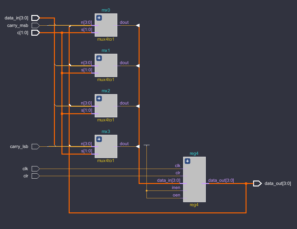 mux4to1 mx0({data_in[3],data_out[2],carry_msb,data_out[3]},c,a[3]);